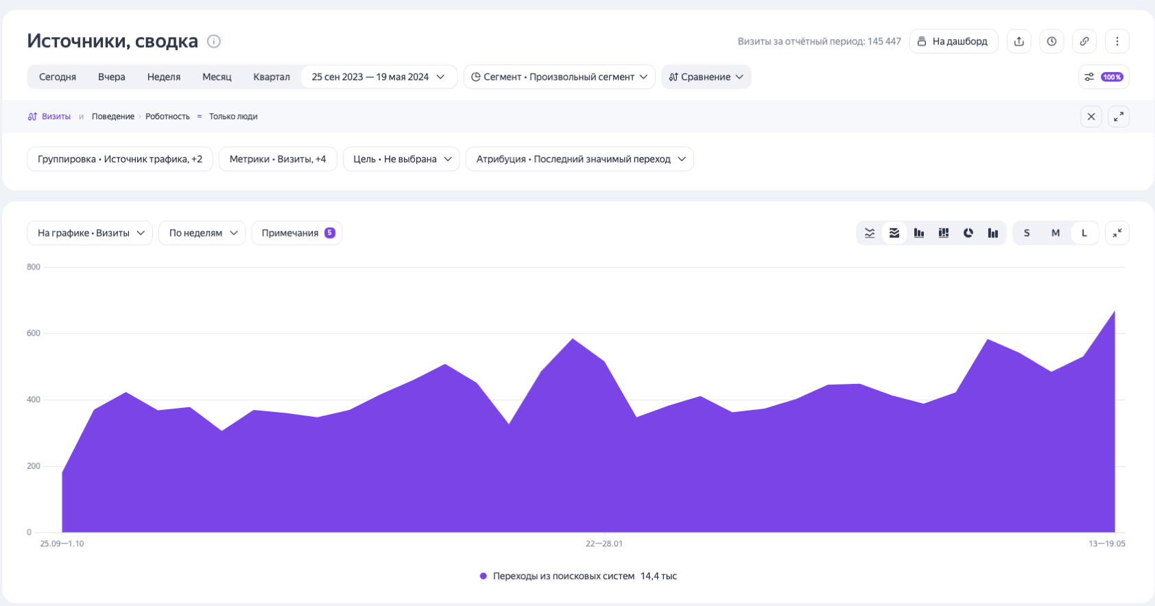 а на годы. Позиции укрепляются, трафик и заявки растут стабильно