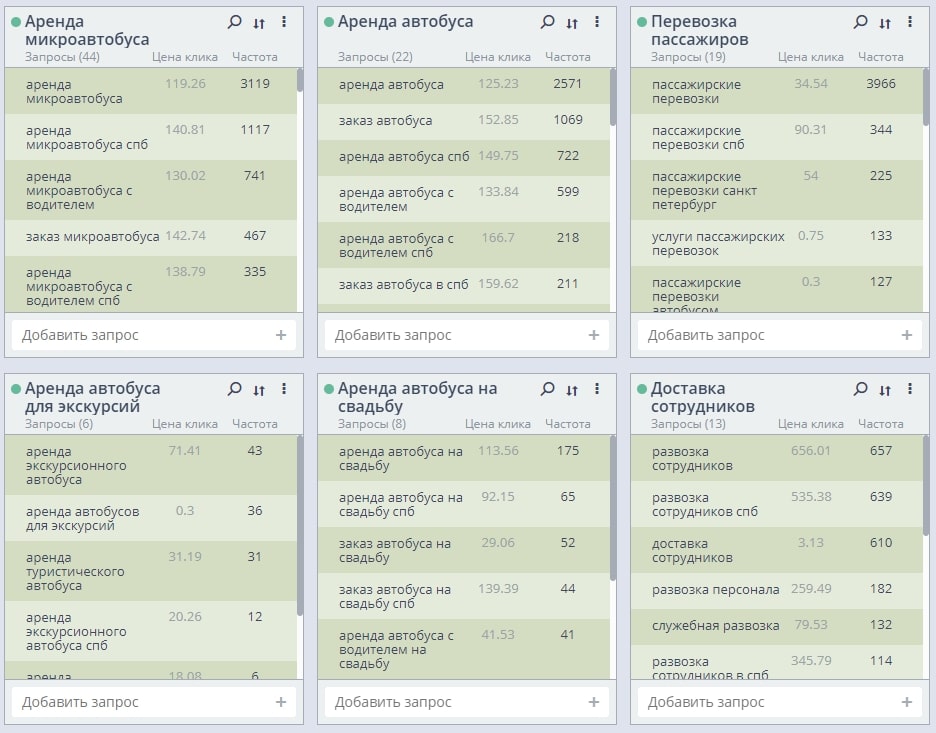 Сбор высокочастотных и среднечастотных запросов по теме аренды автобусов и микроавтобусов (аренда с водителем, на свадьбы, перевозка пассажиров, трансферы и т.д.), оптимизация страниц сайта под запросы для их выведения в ТОП-10 выдачи поисковых систем.
