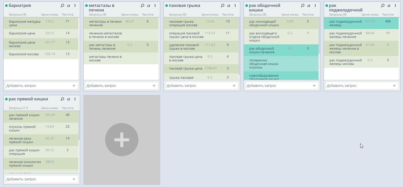 Сбор высокочастотных и среднечастотных коммерческих запросов по теме онкохирургии и бариатрии, заказ и размещение текстов, прописывание мета-тегов.