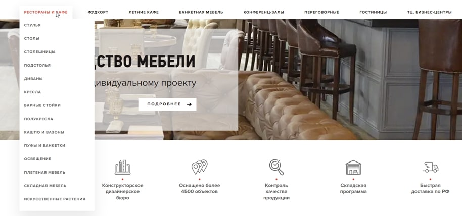 Сбор высокочастотных и среднечастотных запросов по теме изготовления и продажи мебели для кафе, ресторанов, ТЦ, офисов и т.д., оптимизация страниц сайта под запросы для их выведения в ТОП-10 выдачи поисковых систем.