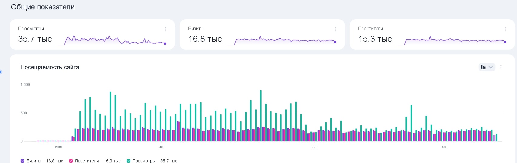 Продолжается работа над выводом в топ НЧ и СЧ запросов брендового трафика на сайт.