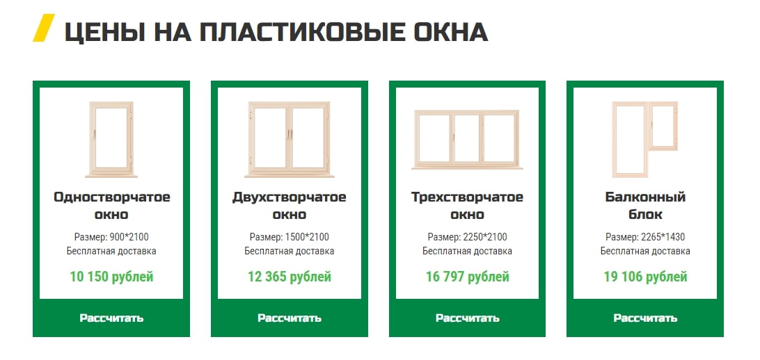 - Добавили блок цен для окон для улучшения коммерческого фактора и увеличения вхождения ключей на странице.