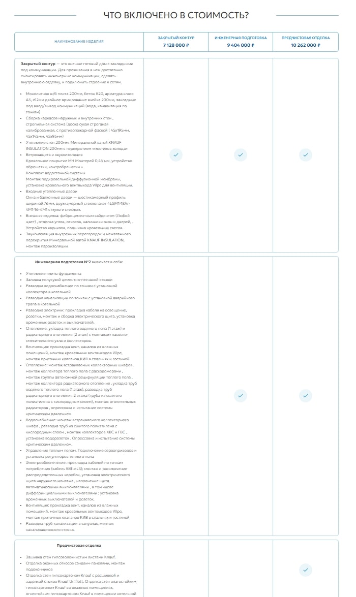 - Добавление цен и информации о проектах: на страницах проектов опубликованы актуальные цены и подробные описания домов.