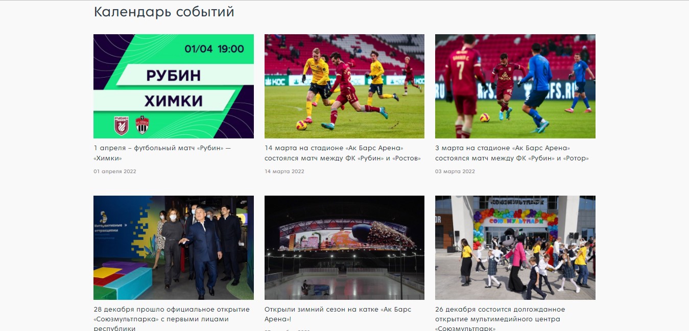 Также на сайте реализован раздел про историю стадиона, видео и фото с самых ярких событий, инфраструктура, навигация и многое другое.