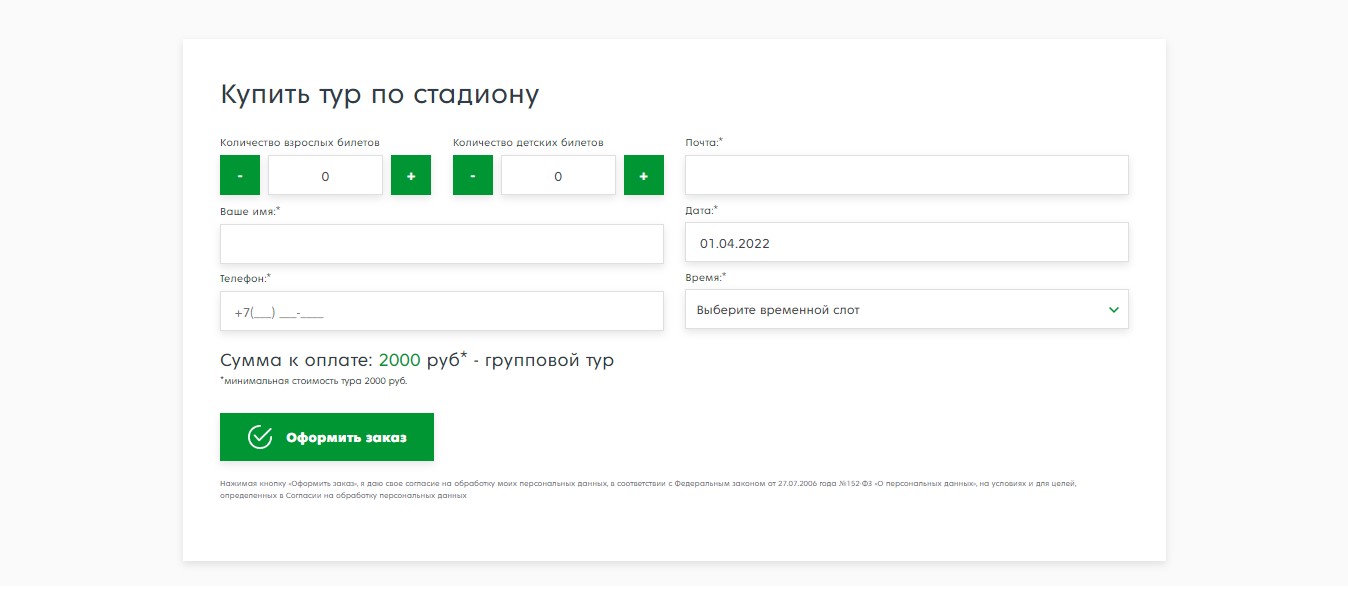 На сайте предоставляется возможность приобрести билеты для тура по стадиону